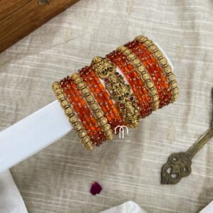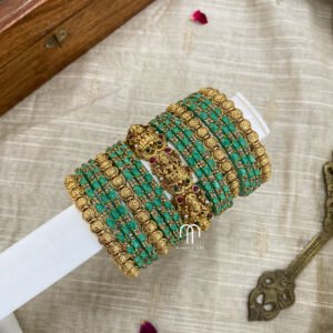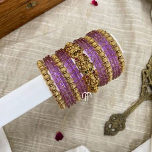 - Entire set contains 4 – 3D single line Kundan Bangles, 2 – Parrot kada, Glass Bangles -36 Bangles.