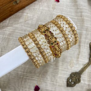 - Kundan Bangles except Glass Bangles contains 2 Parrot kada, 4 – 3D single line bangles.