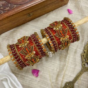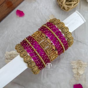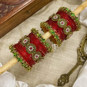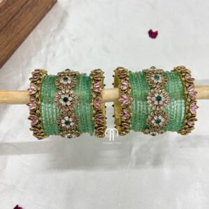 • Except Glass Bangle contains 4 – 3D Single Line Kundan Bangles, 2-Lily Jumbo Kada