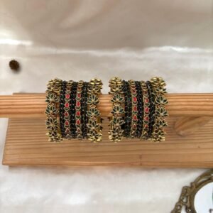 - Kundan Bangle (except glass bangles) contains only 4 – 3D Kada Kundan Bangles, 4 Single line kundan bangles