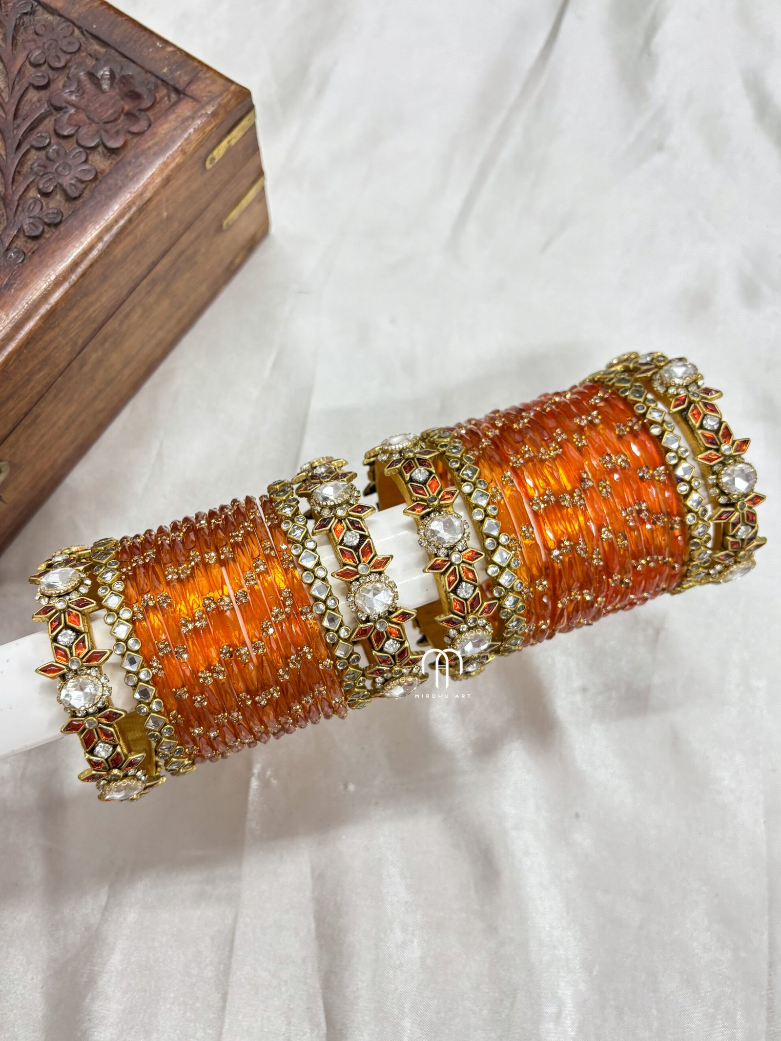 - Kundan Bangle contains – (except glass bangles) contains only 4 – Single Line Kundan Bangles, 4 – 2D Crystal kada.