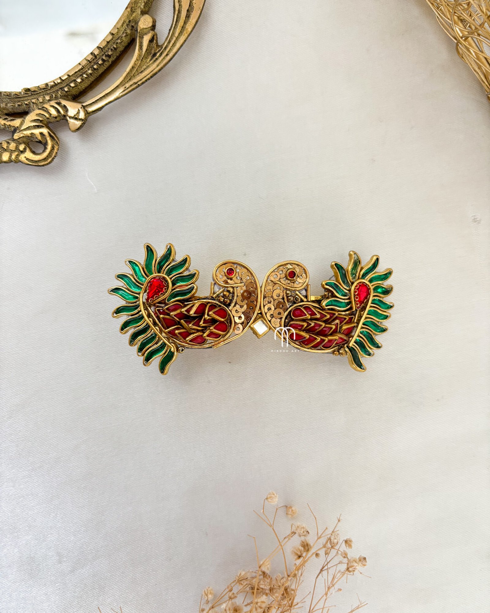 Presenting our stunning Kundan centre Clips, embellished with exquisite Kundan Work. These clips offer a perfect combination of subtle elegance and detailed craftsmanship. Elevate your hairstyle with this refined accessory.