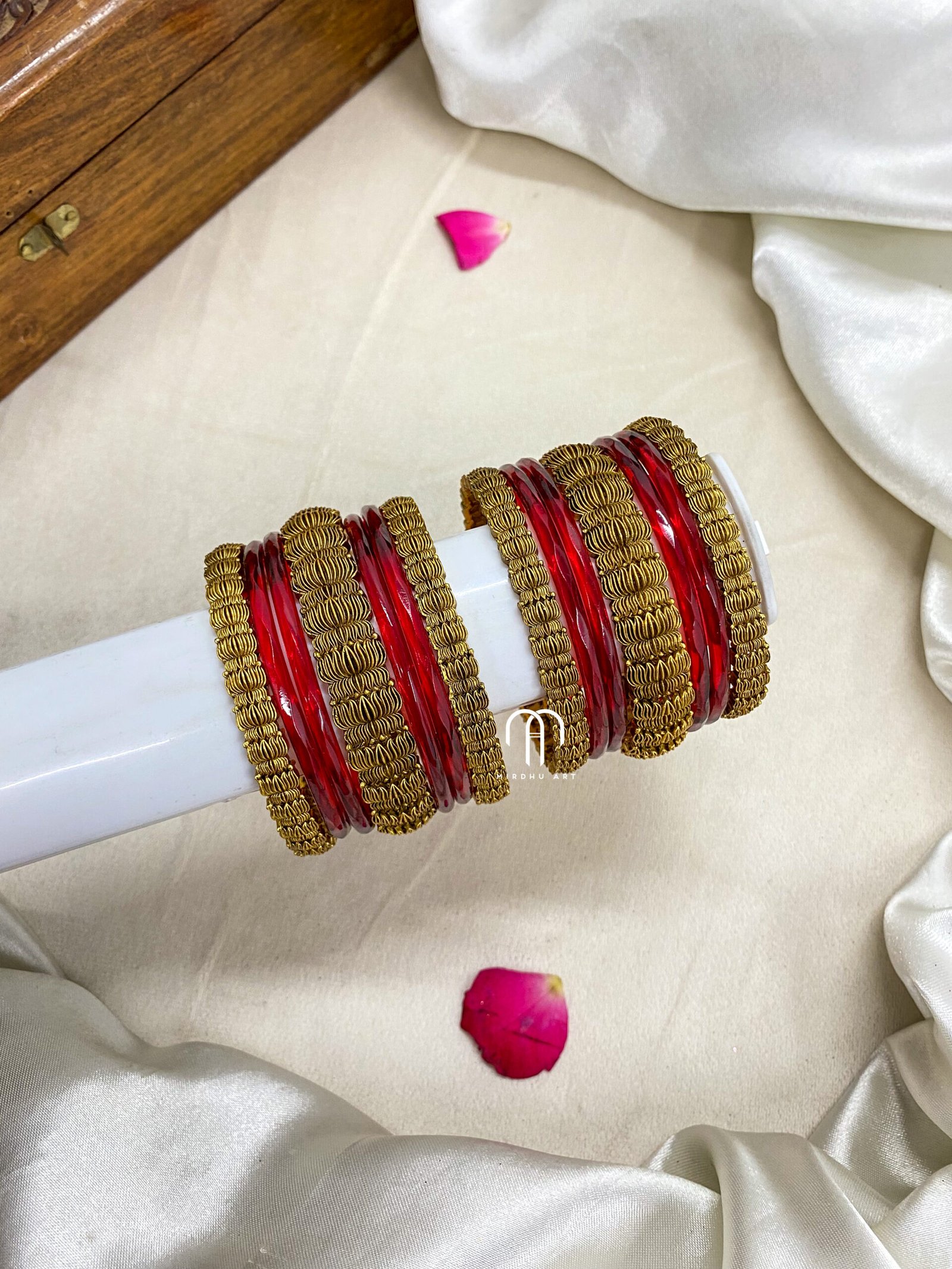 Antique Lotus Bangles -Red