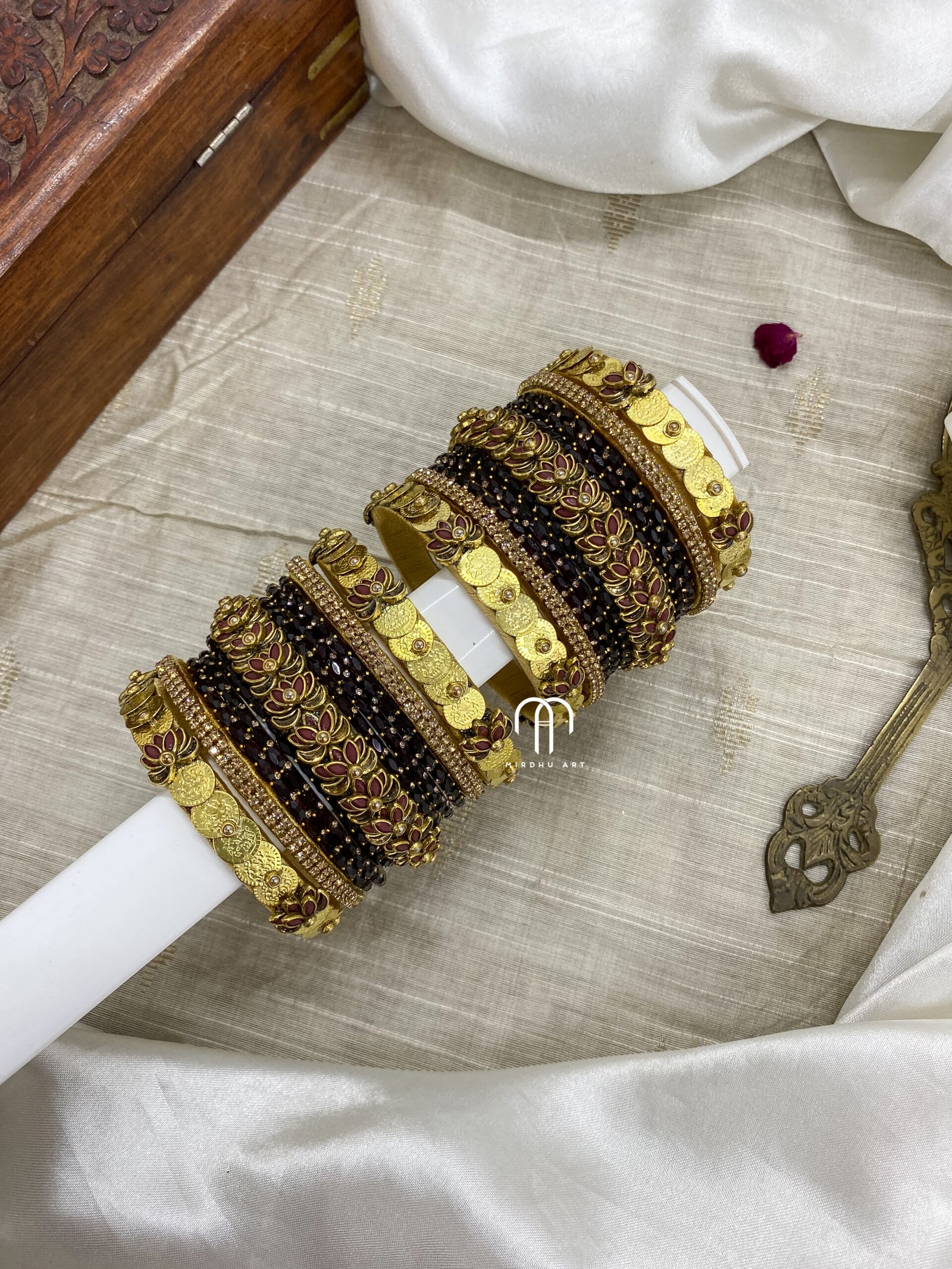 Coin Lotus Kada Bangles – Brown