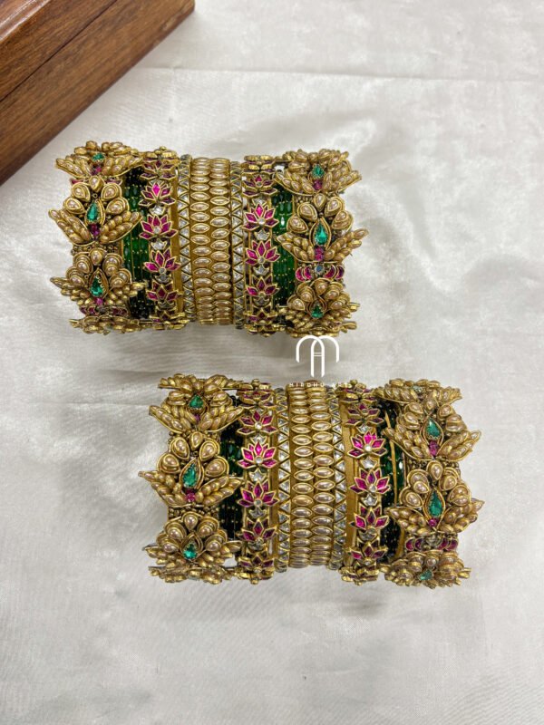 - Center Bangle contains only 2 – 3D statement Blossom Jumbo Kada Kundan Bangles