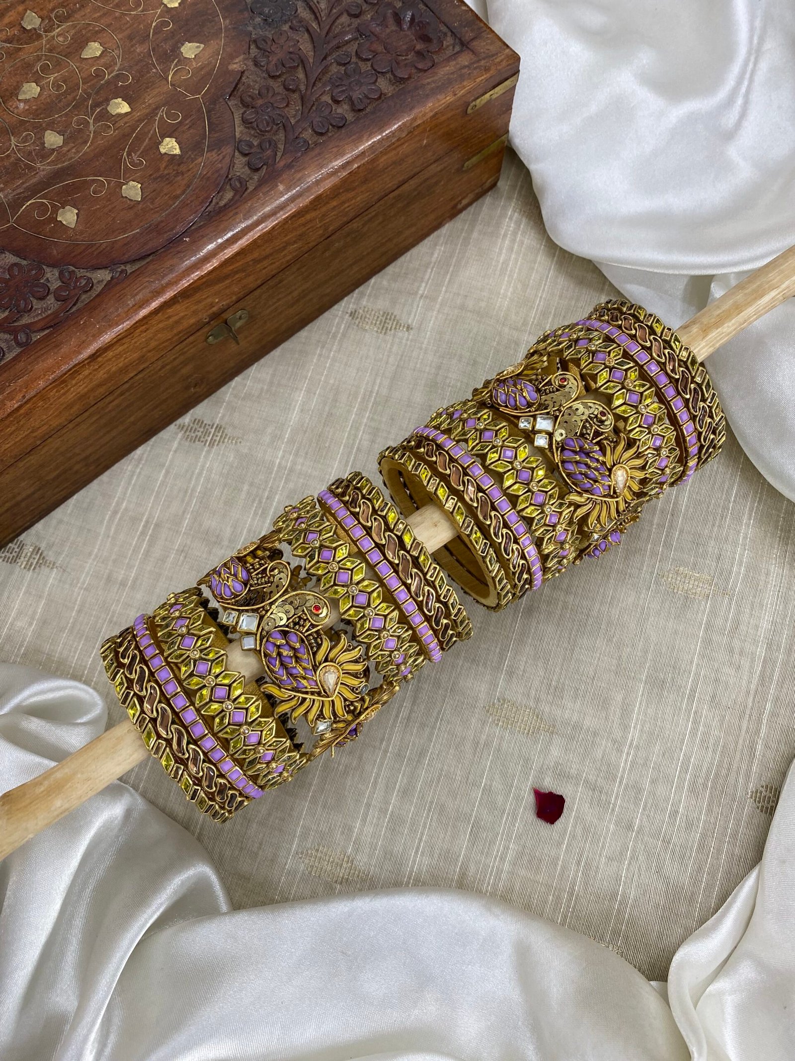 Kundan Bangles – Annapakshi (Lilac & Yellow Bangle Set)