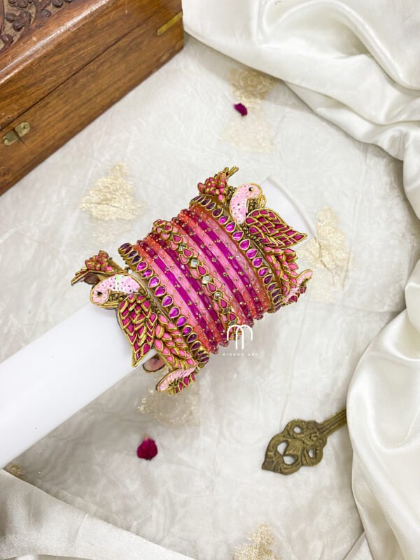 Kundan Bangles – Lotus & Parrot (Baby pink and Rani pink)