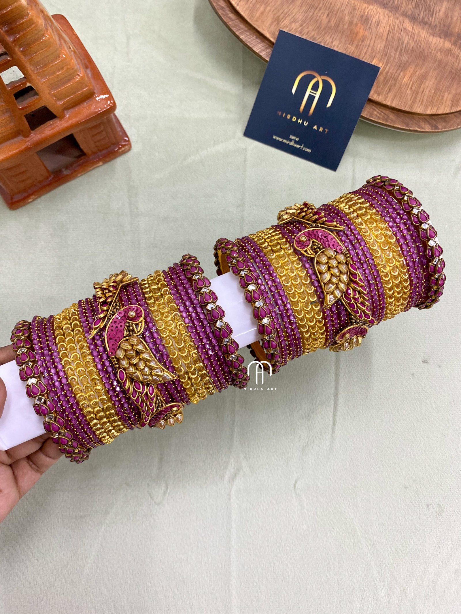 - No of Bangles: 42 bangles (TWO HANDS SETS)