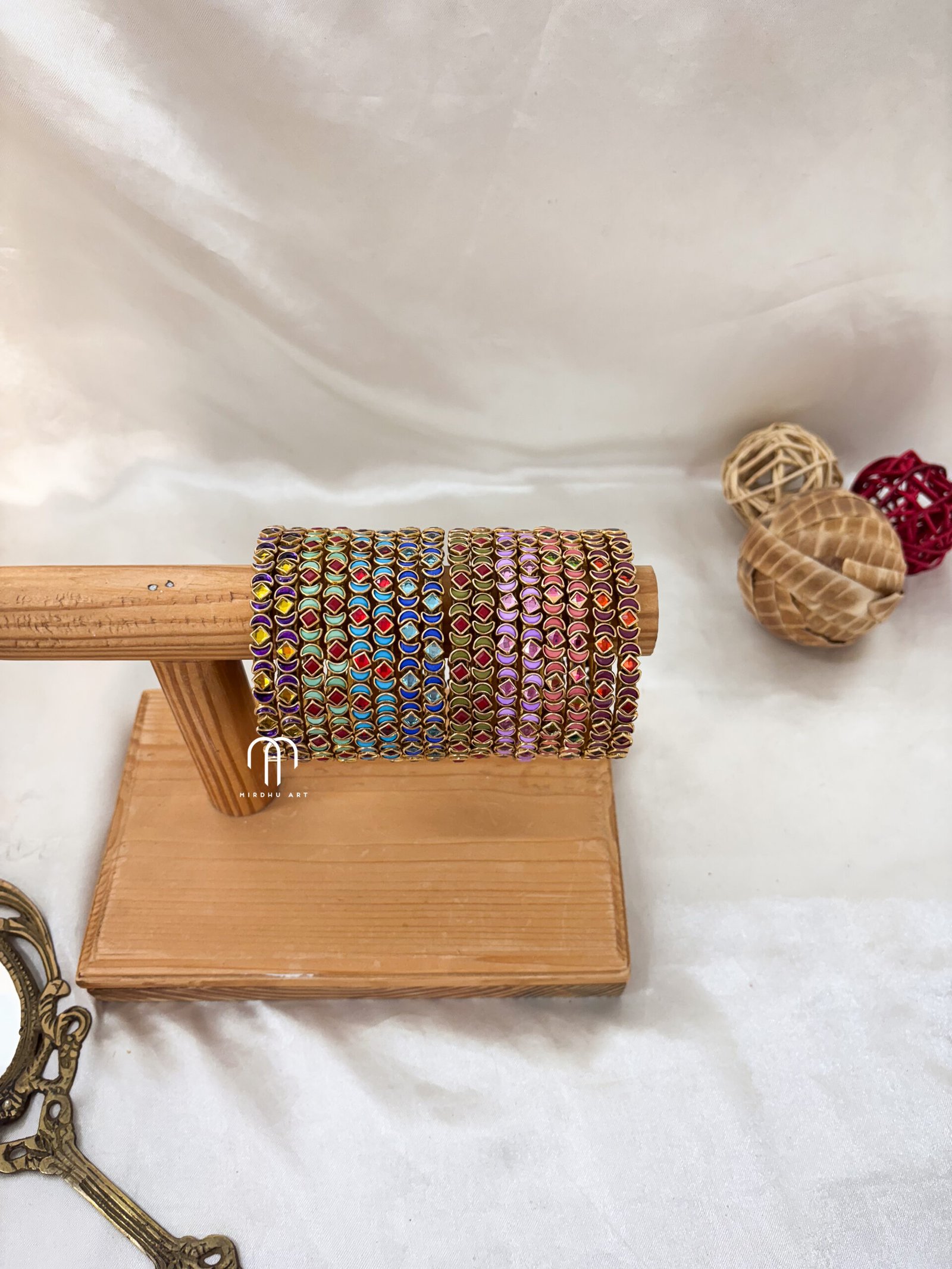 - Mixed Color Bangles – base is Glass with Kundan Stones