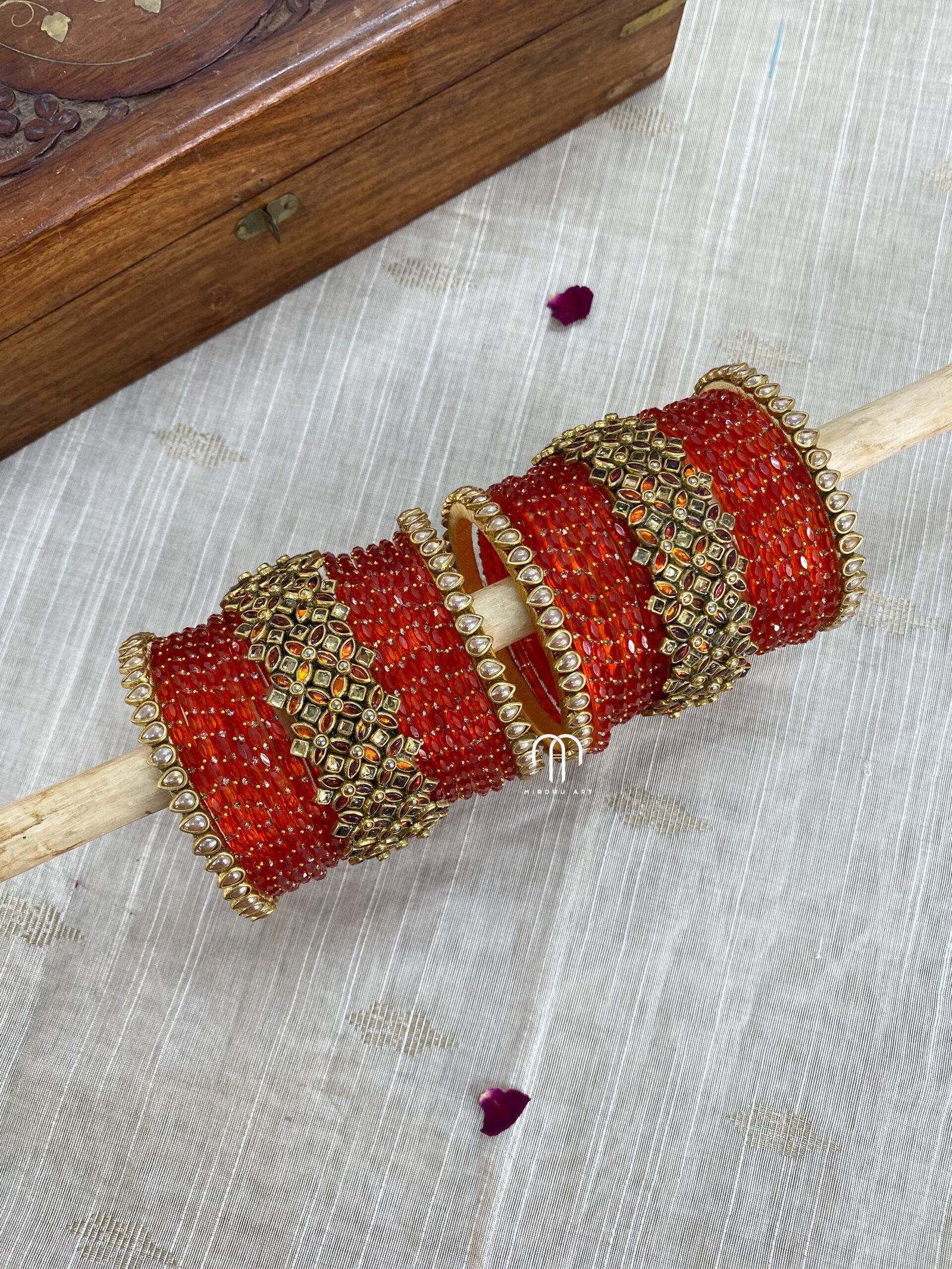 - Kundan Bangle (except glass bangles) contains only 2 – Jumbokada Kundan Bangles, 4 Single line kundan bangles