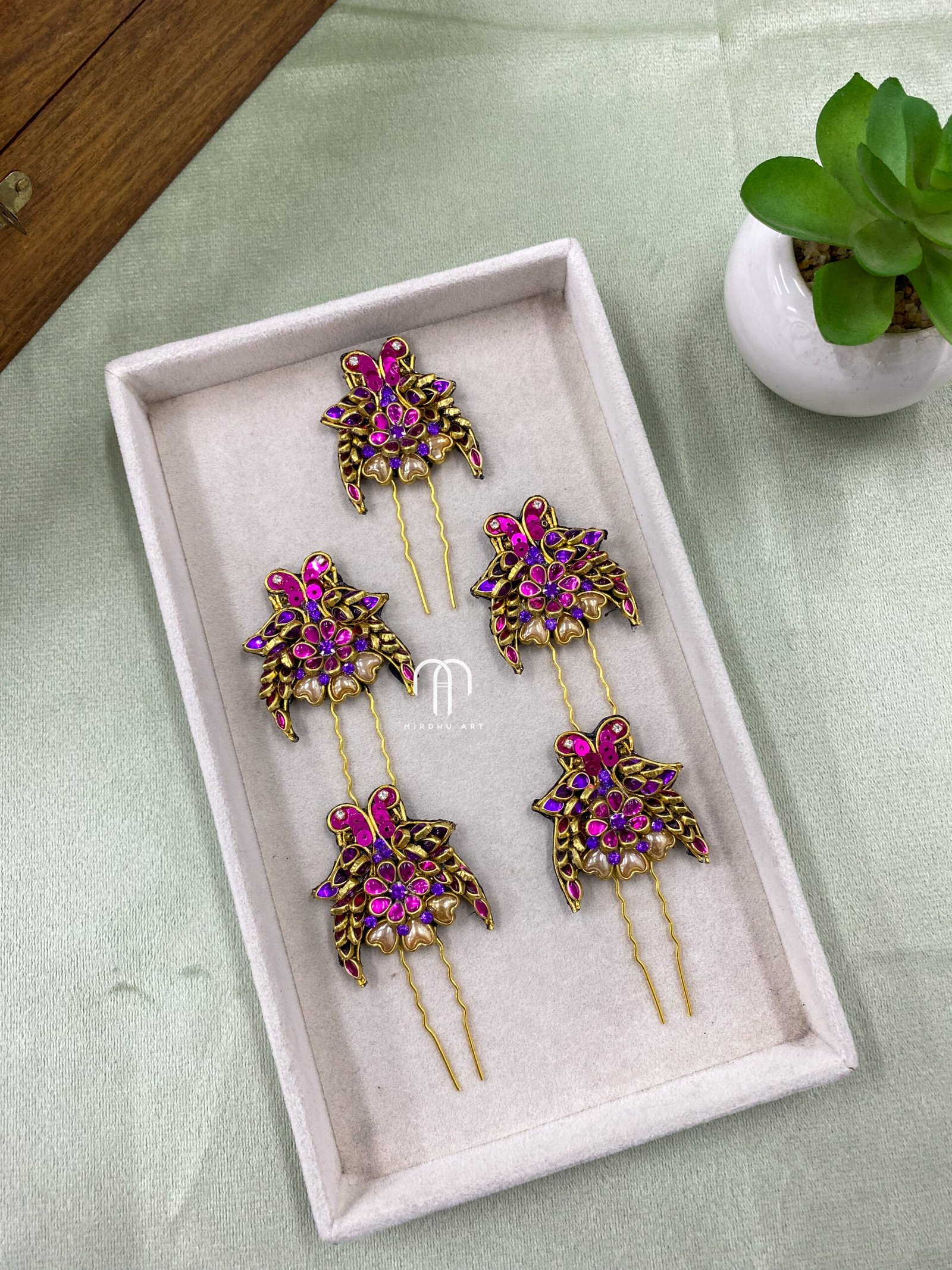 Presenting our stunning Statement Center Clips, embellished with exquisite Kundan Work. These Pins offer a perfect combination of subtle elegance and detailed craftsmanship. Elevate your hairstyle with this refined accessory.