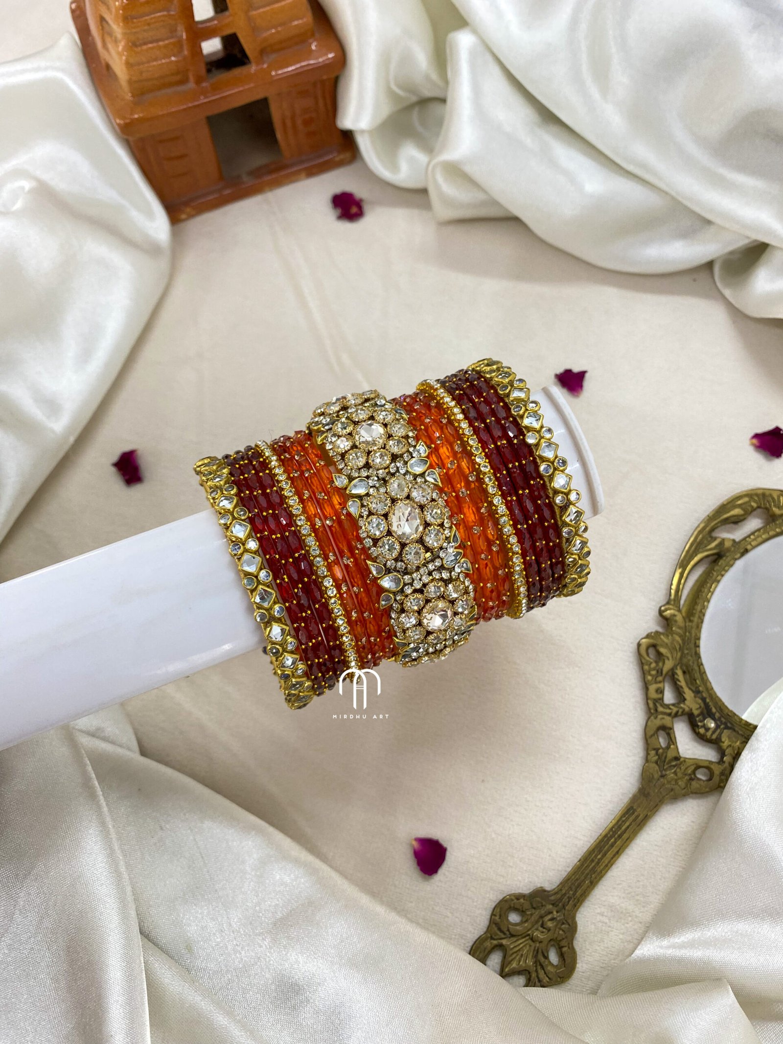 Polki Diamond Replica Bangles – Rust Orange and maroon