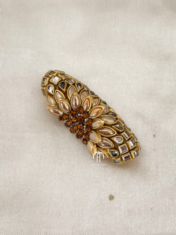 Presenting our stunning Statement Center Clips, embellished with exquisite Kundan Work. These Pins offer a perfect combination of subtle elegance and detailed craftsmanship. Elevate your hairstyle with this refined accessory.